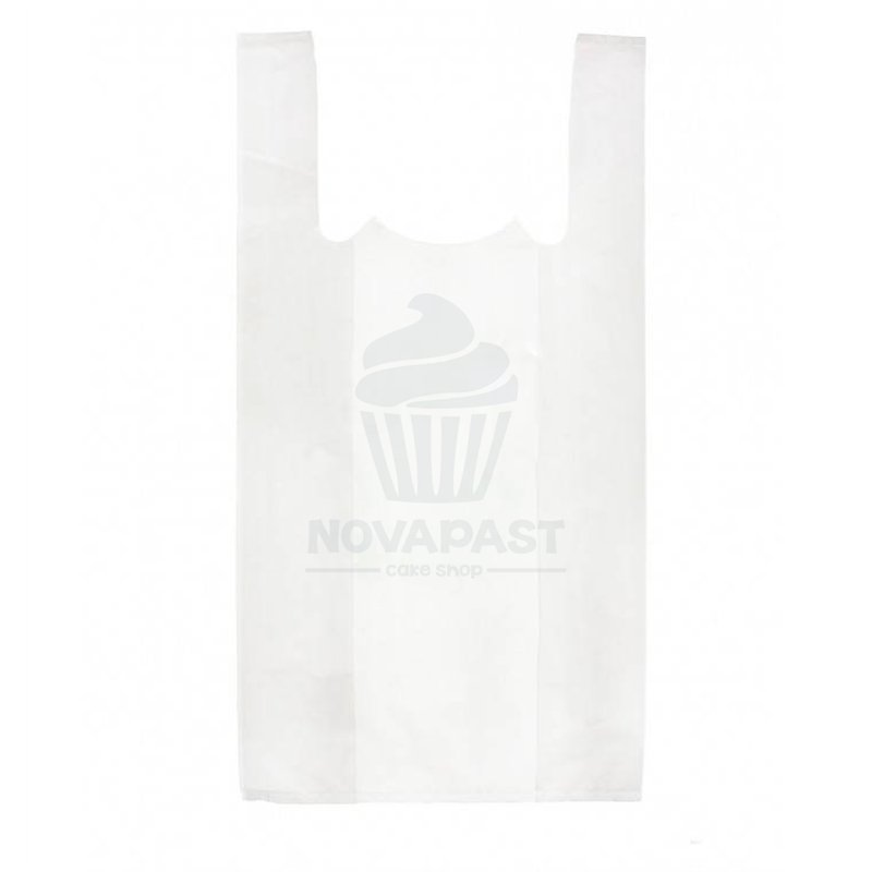 White plastic bag with 70% recycled material, measuring 42x53 cm. Package content: 1 KG