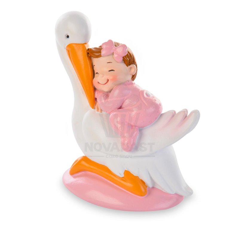 Discover the charming "Stork with Pink Baby Roof" figure from the renowned FG brand, a perfect detail to add a special touch to your pastry creations. This carefully crafted figure depicts a stork holding an adorable baby wrapped in a soft pink blanket, ideal for decorating baby shower cakes or welcome celebrations. Its detailed design and delicate colors bring an air of tenderness and joy to any event. Made with high-quality materials, it guarantees durability and a flawless finish. With FG's "Stork with Pink Baby Roof," each cake becomes a work of art that celebrates the arrival of a new family member. Add a touch of sweetness and symbolism to your creations with this charming ornament.Figure with a baptism theme made of resin and hand-painted. Suitable for contact with food.