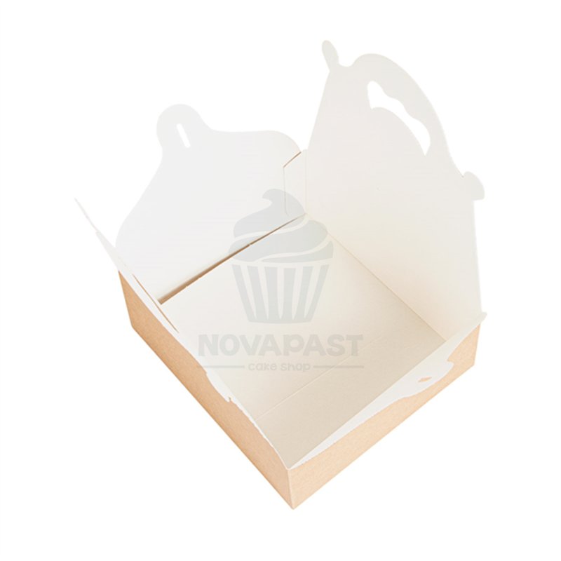 Discover the versatility and elegance of the Kraft Box with Handle, measuring 17x15.5x6 cm, a product from the renowned brand TH Carton. This box is the perfect solution for presenting and transporting your pastry, bakery, and ice cream creations with style and safety. Made with high-quality materials, its kraft design gives it a natural and sophisticated look that enhances the presentation of your products. The practical integrated handle makes it easy to carry, making it an ideal option for taking your treats to any event or celebration. Additionally, its compact size is perfect for containing anything from cupcakes and cookies to small cakes and ice cream, ensuring they arrive in perfect condition at their destination. With the Kraft Box with Handle from TH Carton, you are not only choosing functional packaging but also a presentation that reflects the care and dedication you put into each of your creations. Make your products shine with this elegant and practical packaging solution.Make a difference with this box featuring glossy white and gold film inside. Ideal for all kinds of cakes, desserts, tea pastries, chocolates, and specialties. This model is self-assembling; just fold and the box assembles itself. Ready to customize, you can add a business sticker or label. Height: 6 cm.