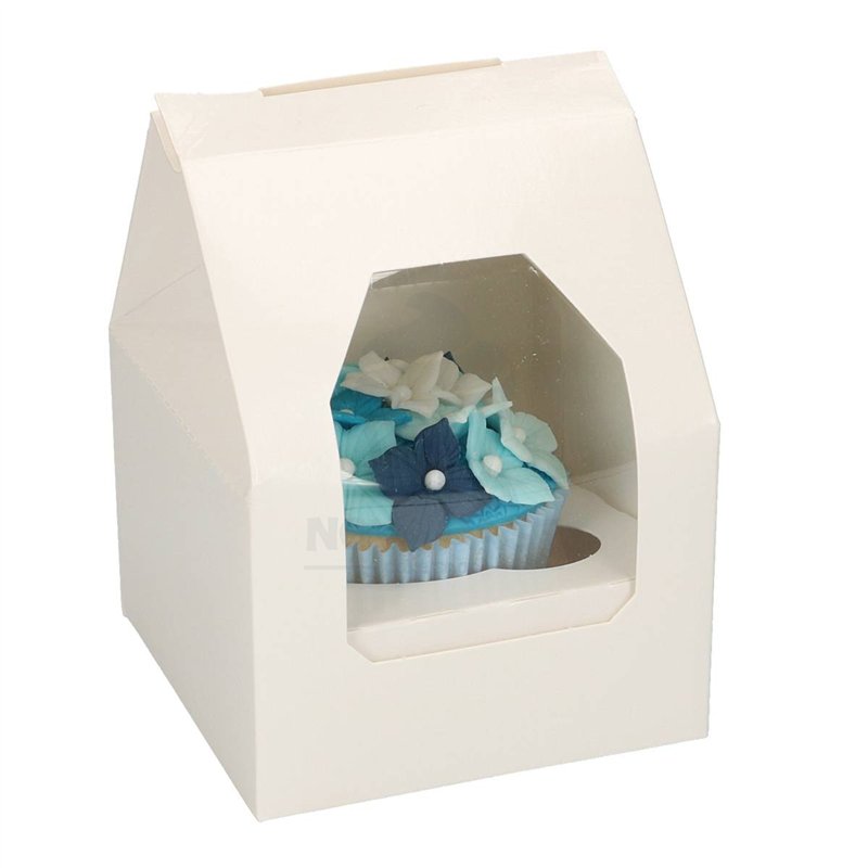 Wrap your most precious cupcake or muffin in this practical FunCakes cupcake box. The white box has a handy window. Size: approx. 9 x 9 x 13 cm. Includes interior support.