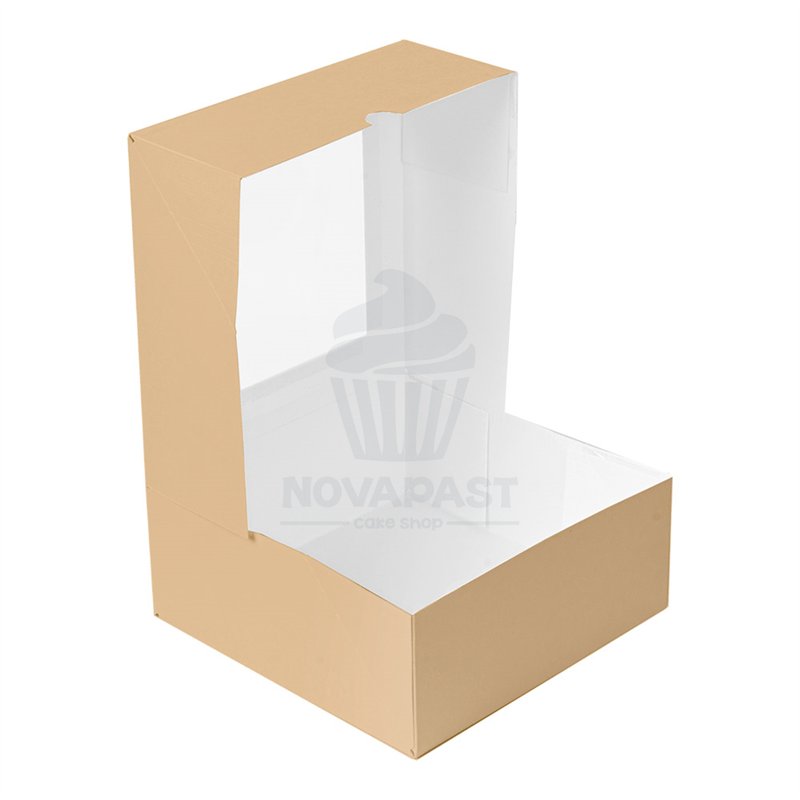 We present the "BOX + SEPARATE LID WITH KRAFT WINDOW 7X7X4CM," the perfect solution to present your baking and pastry creations with a touch of distinction and elegance. This high-quality box is not only affordable but also stands out for its practical and attractive design.