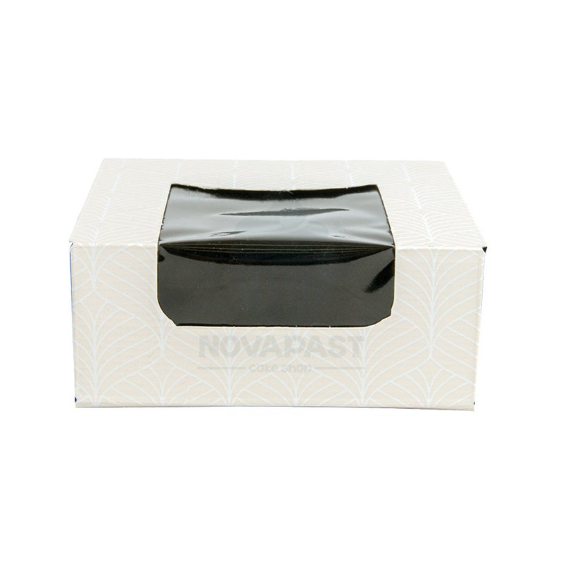 Whether you're packaging a single cupcake or an assortment of pastries, the "CAJA BLANCA C/VENTANA INT. NEGRO 10X10XH4 CM" is the perfect choice to elevate your presentation. Its combination of style, practicality, and affordability makes it a must-have for anyone looking to impress with their baked goods. Order yours today and see the difference it makes!
