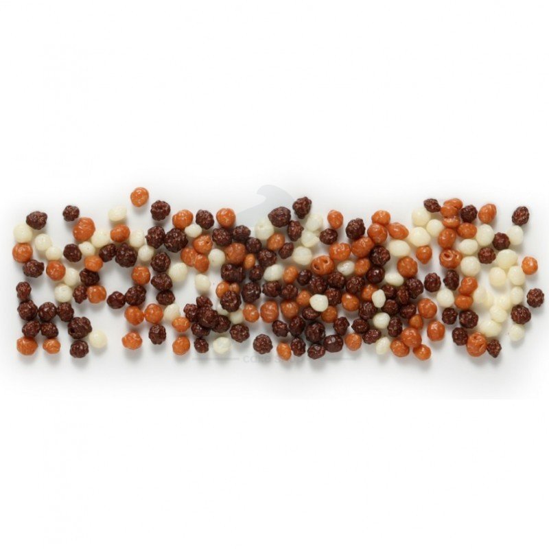 Mini pearls of three chocolates and cereals (milk chocolate, dark, and white) ideal for decorating desserts, sweets from Funcakes