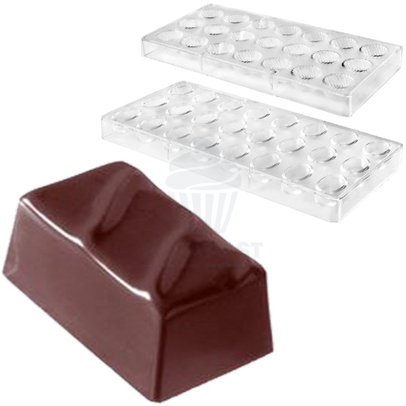 Professional mold for creating chocolates made of highly resistant polycarbonate.