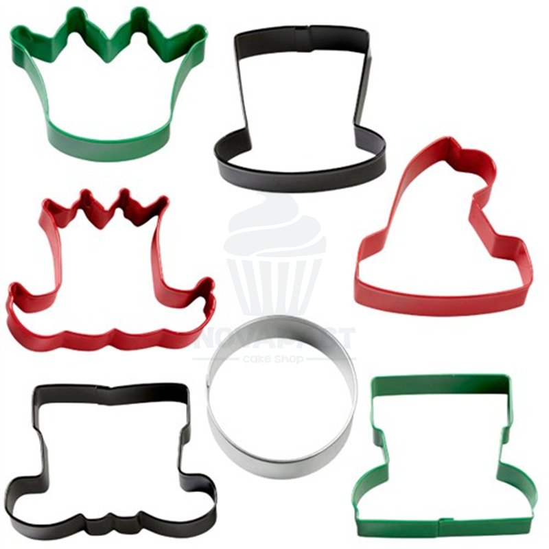 Super fun set of Wilton cutters for this Christmas. The set contains three different hat designs, three socks, and a circle. Includes recipes in English