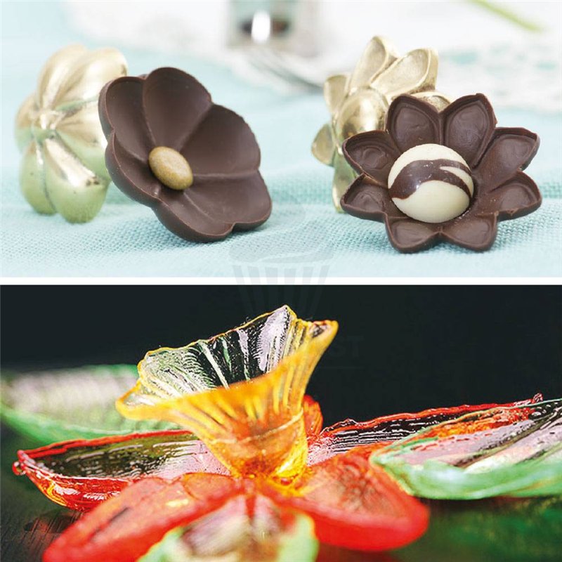 Professional brass mold kit, ideal for making a wide variety of flowers and leaves in chocolate and colored melted sugar. With this technique, it's possible to achieve floral decorations with a three-dimensional and stunning result.
