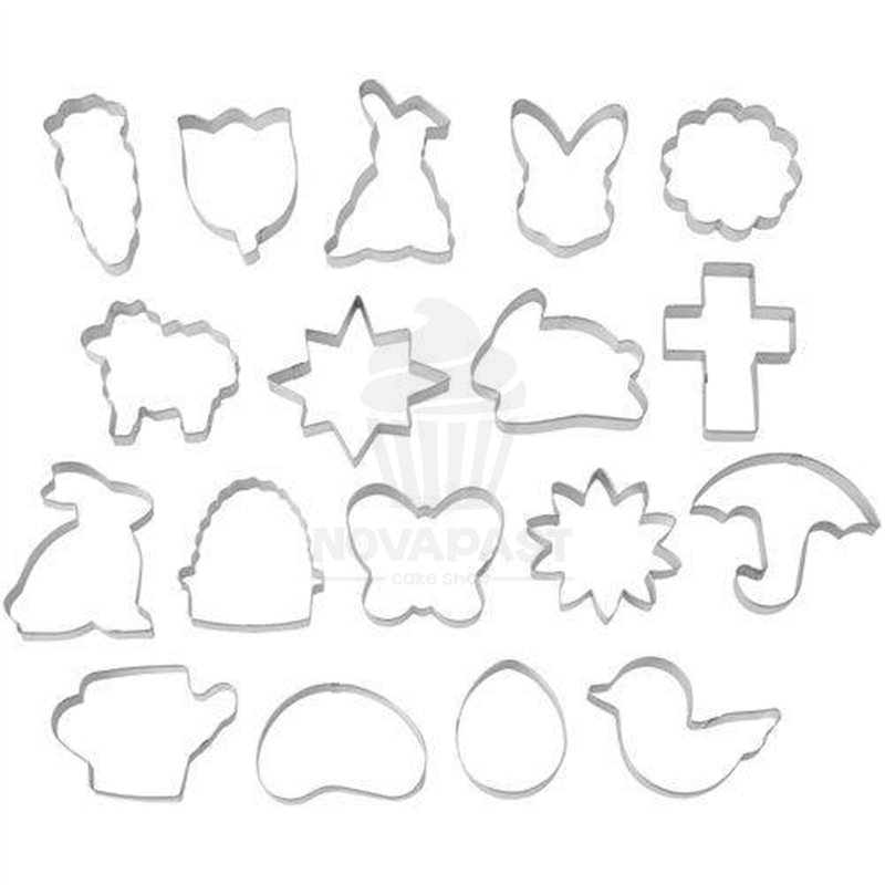 The set includes 18 high-quality metal cutters, specifically designed for the Easter season. From bunnies and eggs to flowers and butterflies, each cutter offers a unique shape that will make your cookies the center of attention at any gathering or celebration. The metal construction ensures that each cutter is durable and sturdy, allowing you to use them year after year without losing their shape.