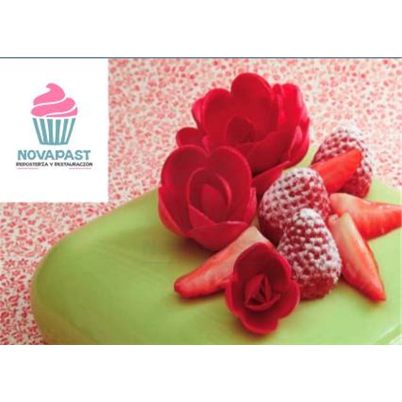 Beautiful wafer roses in intense red color, 5 cm in diameter. Decora your cakes easily in a quick and simple way. Unlike other edible flowers, these blossoms have an intense strawberry flavor.