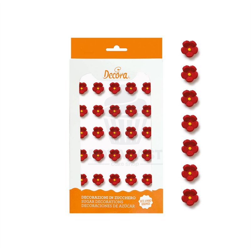 Ready-to-use sugar flowers. Handmade with natural extract dyes. Perfect for easily decorating cakes, cupcakes, cookies, and treats. The package contains 30 pieces.