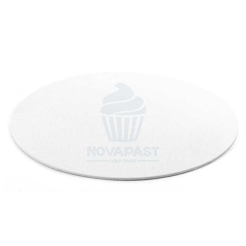 Rigid lower cake base of 3mm. round, made of white colored aluminum-coated cardboard. Individually wrapped.