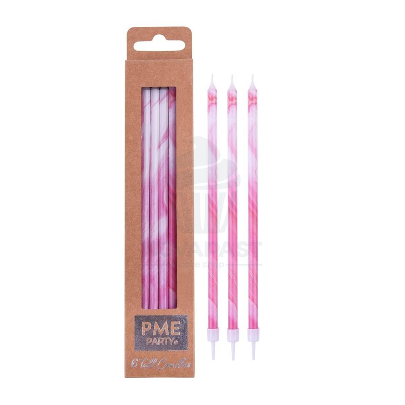 The PME Case of 6 Pink/White 18 cm Candles is more than just a cake accessory; it's a statement of style and good taste. Ensure your events are remembered for their elegance and attention to detail with these beautiful candles. Perfect for any occasion, they are an essential addition for those looking to celebrate in style.