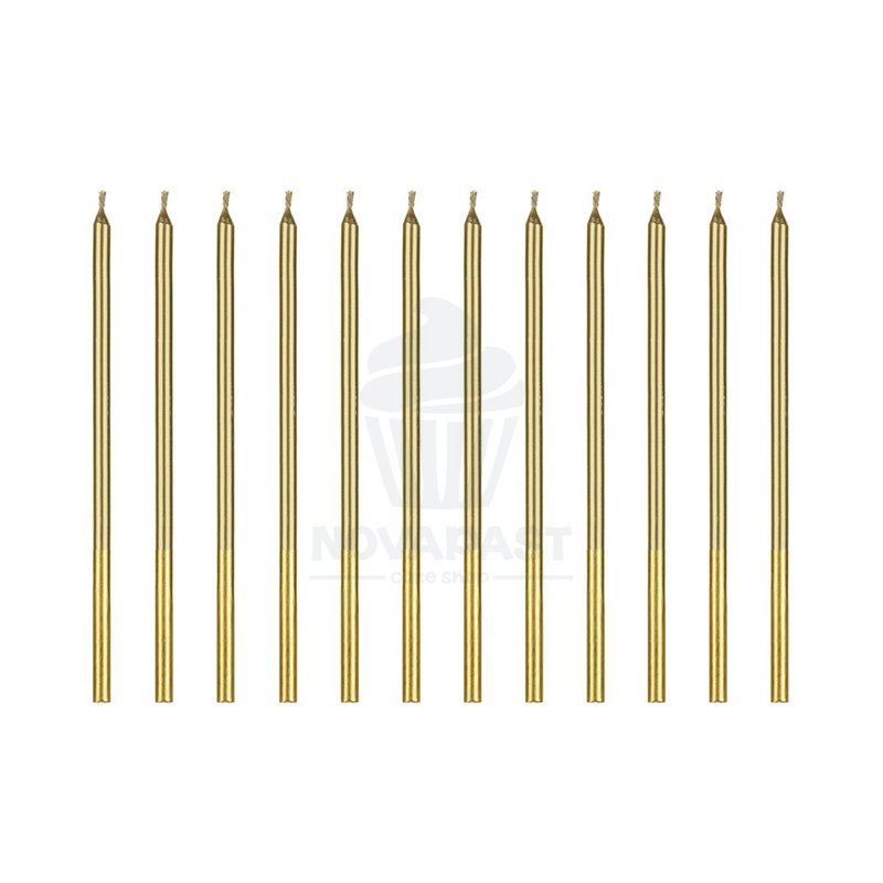 Elegant tall candles, 18 cm in length, ideal for cake and sweet decorations. The set includes a set of candle holders for inserting into the product.