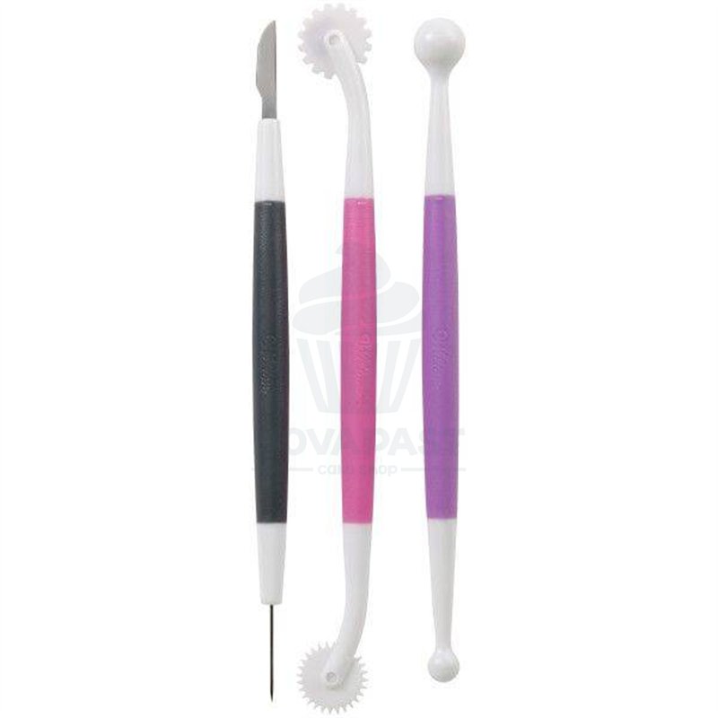 Working with fondant will now be easier thanks to the Wilton Fondant and Gum Paste Tool Set. The three double-ended tools make it easy to shape, detail, and cut fondant or gum paste. This set contains a ball tool, a quilting tool, and a knife and needle tool.