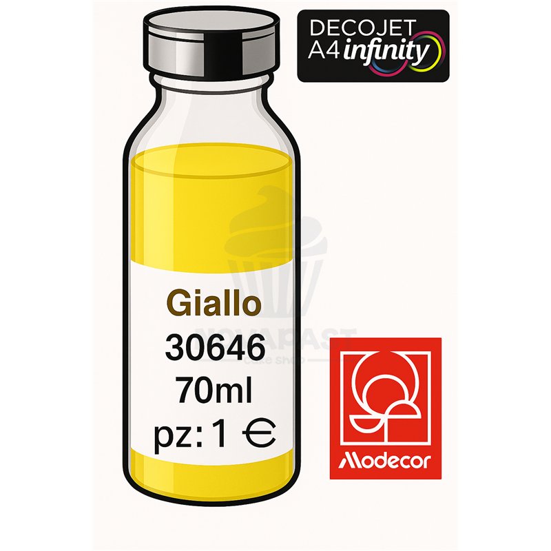 Discover excellence in edible printing with the Modecor Elite Printer Cartridge in yellow. Specifically designed to meet the needs of pastry, bakery, and ice cream professionals, this cartridge offers exceptional print quality that enhances every detail of your creations. The Modecor brand, recognized for its innovation and quality, ensures that every drop of ink translates into vibrant and accurate colors, perfect for decorating cakes, cupcakes, and a variety of desserts. Compatible with Elite line printers, this cartridge is easy to install and ensures a constant ink flow, preventing smudges and guaranteeing flawless results. Ideal for those looking to take their designs to the next level, the Modecor Elite Printer Cartridge - Yellow is the perfect choice for adding a touch of color and professionalism to your sweet masterpieces. Transform your creations into true pieces of edible art with the confidence that only Modecor can offer.Set of 4 specific cleaning cartridges for the Decojet "Elite" printer.