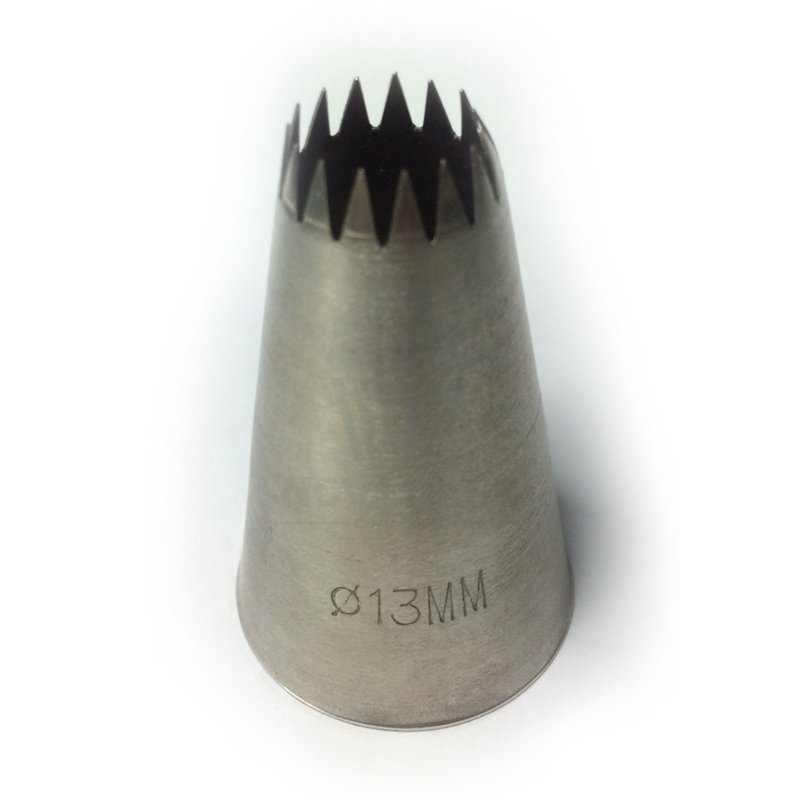 Professional stainless steel nozzle. Finished with a serrated tip. Outlet diameter: 13 millimeters. Equipped with 15 tips.