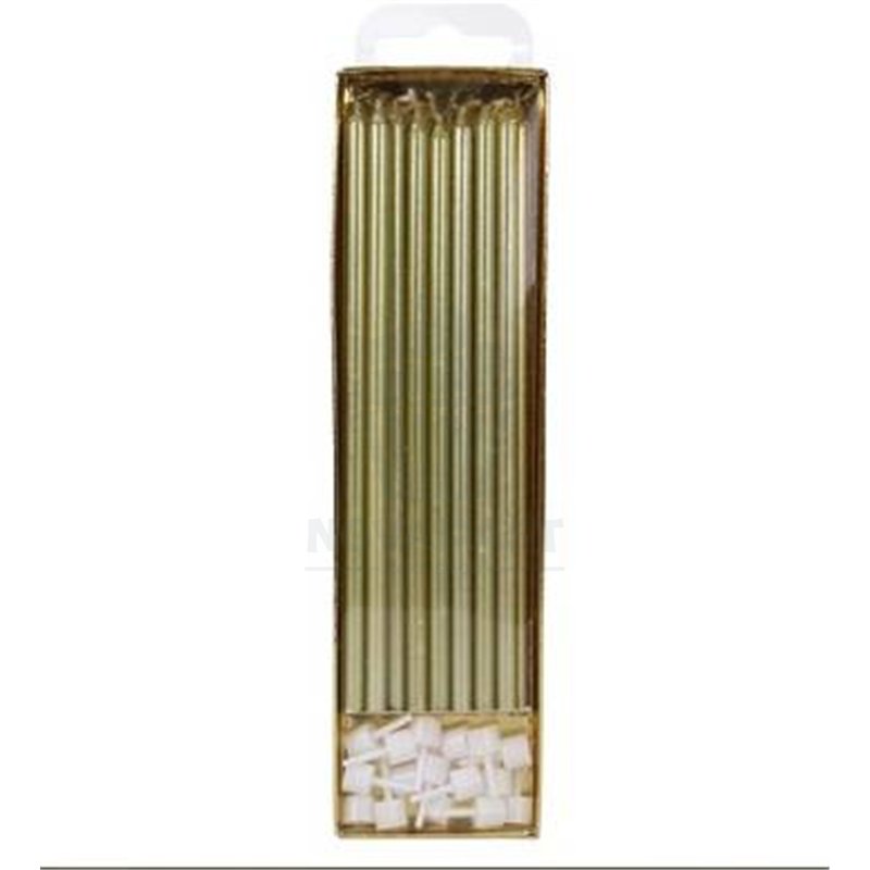 The PME BOX 16 EXTRA LONG CANDLES + GOLD HOLDER is the perfect choice for those seeking quality and style in their celebrations. With its sophisticated design and practical functionality, these candles will transform any cake into a masterpiece worthy of remembrance. Don't miss the chance to add a touch of gold to your most special moments.