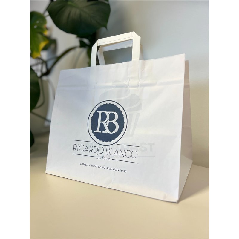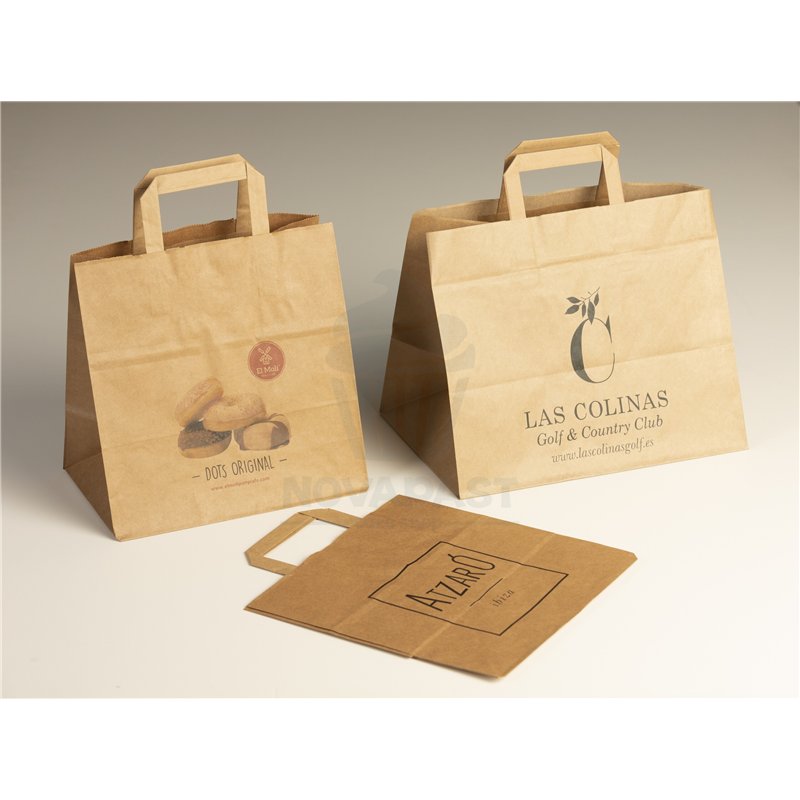 Flat Handle Bags: As the name suggests, these bags have handles that are made from a strip of paper. The handles are attached at the top of the bag and are comfortable for carrying, allowing users to easily carry their purchases.