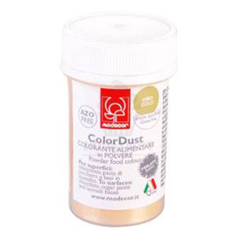 Discover the touch of elegance that will transform your creations with the "Gold Spray" powder dye from Modecor. This product, presented in a practical 10-gram container, is ideal for giving a golden and sophisticated finish to your cakes, breads, and ice creams. Its powder formula allows for uniform and precise application, ensuring that every detail shines with an unparalleled golden glow. Perfect for special occasions, this dye is easy to use and guarantees professional results. With Modecor, your desserts will not only be delicious but also visually striking, capturing the attention of all your guests. Add a touch of luxury to your creations and surprise with a golden finish that will make your sweets stand out at any celebration.Lipophilic powder dye for surfaces and masses, pastel colors. You can dye all kinds of doughs, creams, and toppings. Also used for direct application with a brush on flowers, figurines, and surfaces. GLUTEN-FREE.