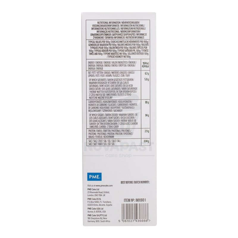 Transform your baking creations with the PME 500-gram Vanilla Cake Mix. This mix is the perfect solution for those looking for a fluffy and flavorful cake without complications. With high-quality ingredients, it guarantees a consistent and delicious result every time you bake. You only need to add eggs, water, and oil to obtain a smooth and homogeneous batter that bakes to perfection. Ideal for any occasion, from special celebrations to a simple homemade dessert. Its delicate vanilla aroma and light texture will make each bite an unforgettable experience. Perfect for amateur and professional bakers who want to save time without sacrificing flavor. Take your baking skills to the next level with this mix that never disappoints.