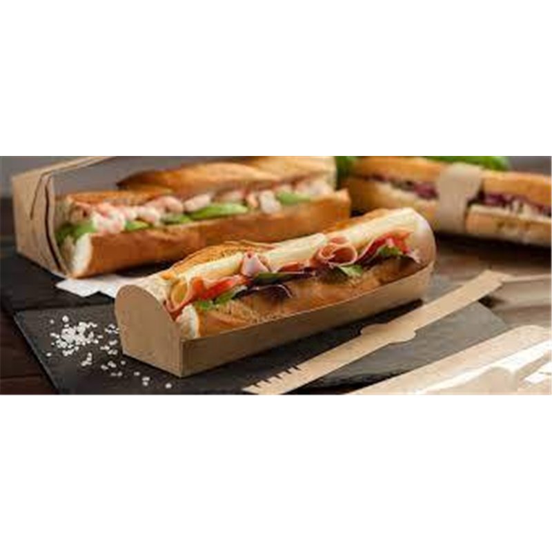Container made of kraft cardboard suitable for food contact. You can present sandwiches, sweets, pastries...
