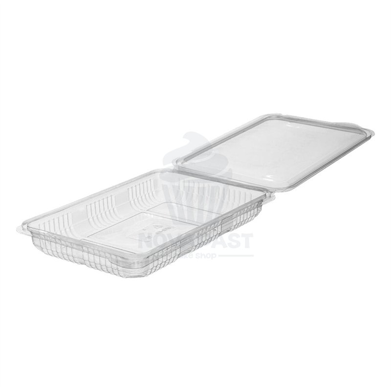 Discover the perfect solution for your storage and presentation needs with the PACK. 40 TRANSPARENT TRAYS WITH HINGE H27 19x12x2.7CM. These transparent trays are ideal for any bakery or pastry business looking for a practical and economical option to display their delicious products.