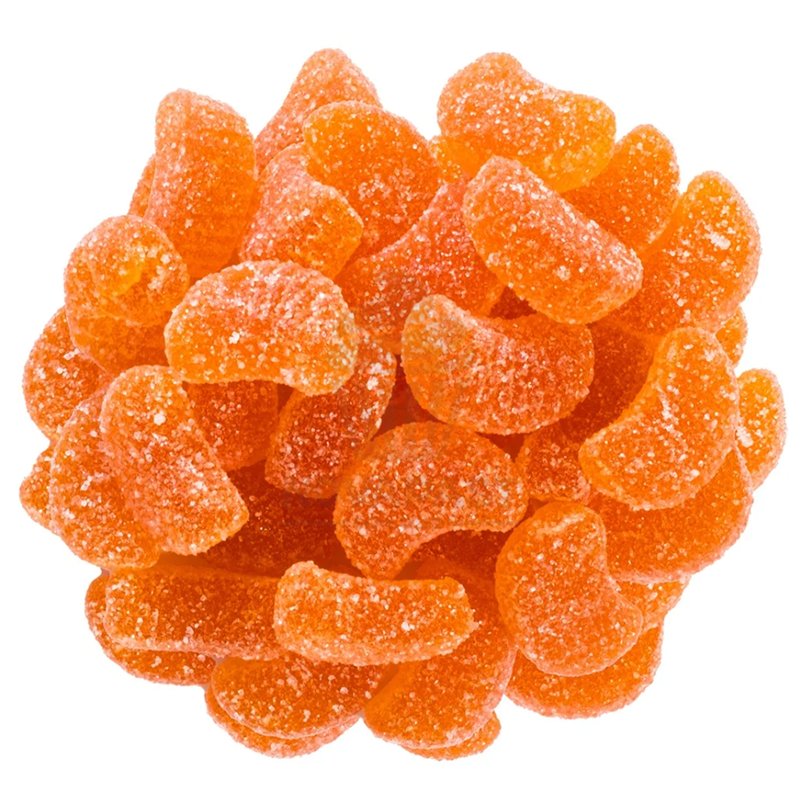Delicious jelly segments coated in sugar with an intense flavor. Ideal for decorating desserts and cakes. Resistant to freezing. Presented in a practical jar for preservation. Unit size: approximately 2 cm. Weight: 175 grams.