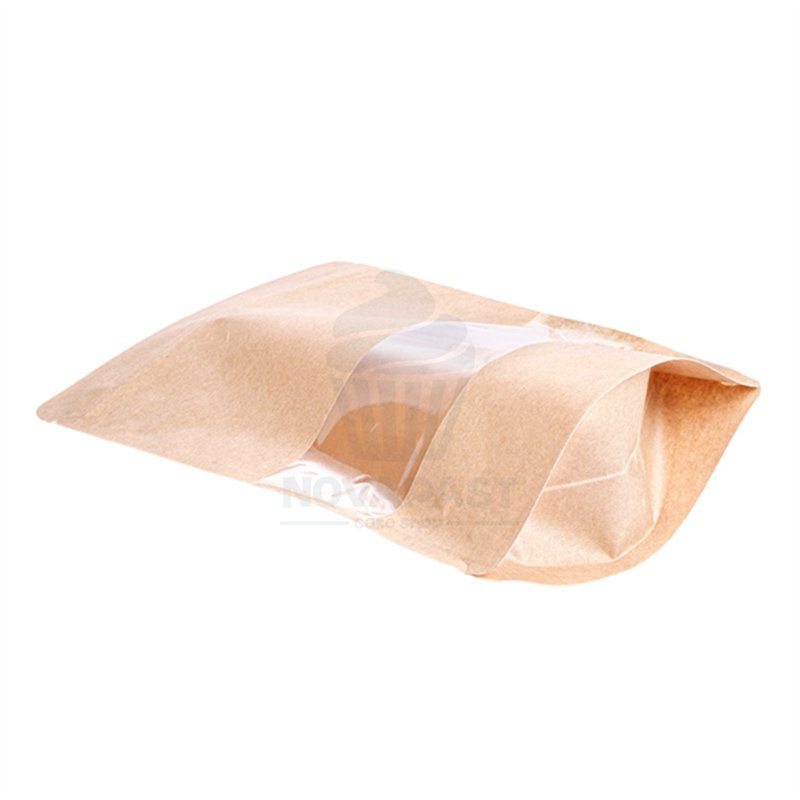 Bulk food bags: coffee, tea, candies, nuts… These kraft paper bags feature a self-sealing system for greater security and a window to display the products inside.