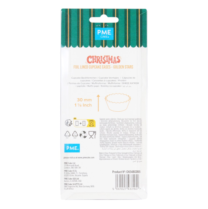 El PME SET DE 60 CAPSULAS PAPEL/ALUM ESTRELLA DORADA no solo es una opción estética, sino también práctica. Su diseño resistente al calor permite que tus cupcakes mantengan su forma perfecta durante la cocción, mientras que el revestimiento de aluminio evita que la grasa se filtre, manteniendo tus bandejas limpias y tus postres impecables.