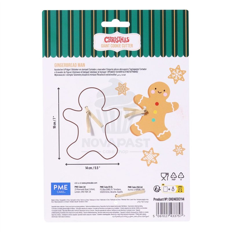 El PME SET CORTADOR GIGANTE HOMBRE DE GENJIBRE 18CM es la herramienta perfecta para aquellos que desean llevar su creatividad en la repostería al siguiente nivel. Este cortador no solo es ideal para la temporada navideña, sino que también es una excelente opción para cualquier ocasión especial donde desees sorprender a tus invitados con galletas de gran tamaño y llenas de personalidad.