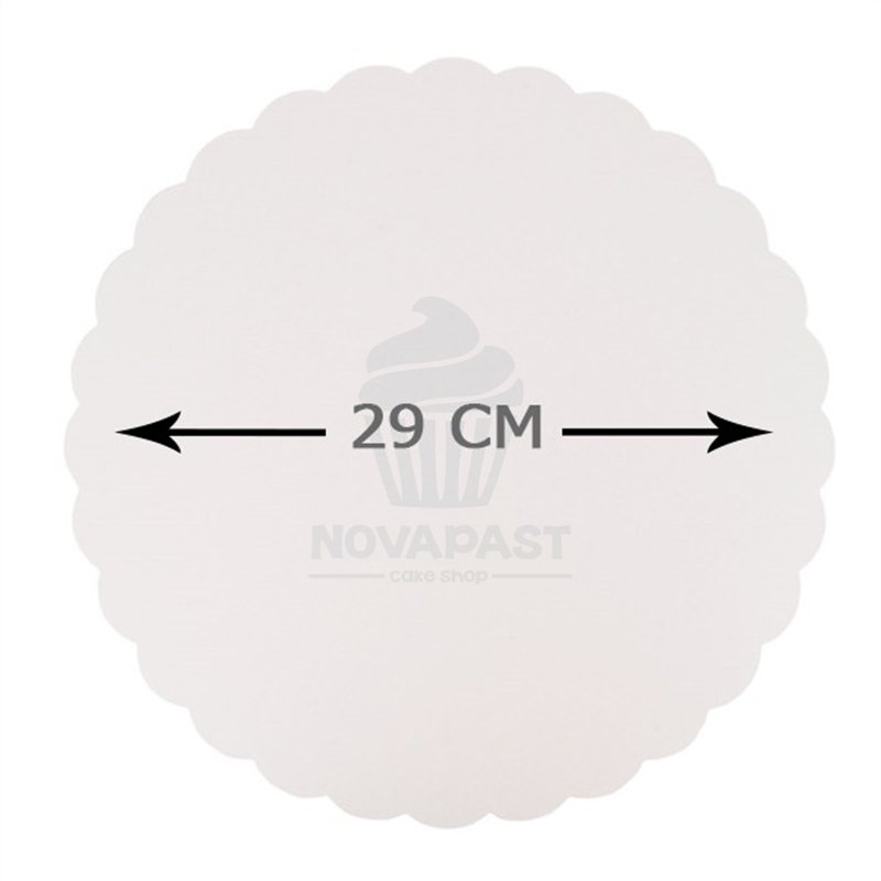 Producto personalizable con tu propia pegatina.Discos planos con borde ondulado de color blanco para presentaciones de piezas de pastelería en mostradores y tienda. El gramaje del cartón de 420gr/M2 y es totalmente apto para contacto con alimentos.