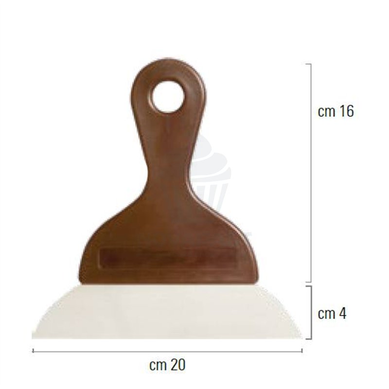 Espátula de plástico imprescindible para la elaboración de natas, nata montada y chocolate. El extremo redondeado le permite seguir con precisión las curvas del recipiente y recoger el producto.