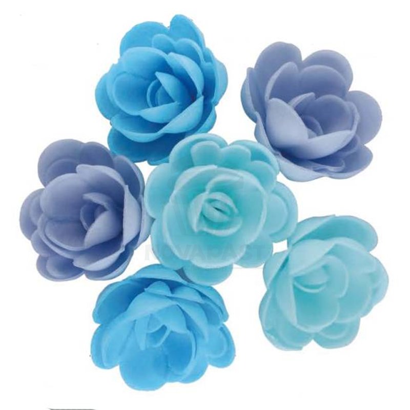 Rosas de azúcar elaboradas mano con tonos azules. Perfectas para una decoración rápida y sencilla.
