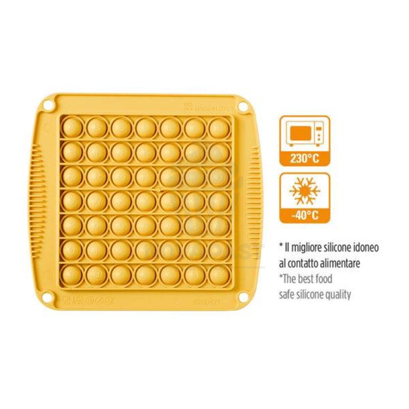 Molde de silicona para preparaciones dulces y saladas compuesto 100% Silicona Platino*. Resiste perfectamente la congelación y la cocción. No altera el sabor de los alimentos. Lavable y reutilizable. Apto para microondas y resistente hasta -40°C + 230°C. * La mejor silicona apta para el contacto con alimentos. Fácil de usar y fácil de limpiar: es un producto extremadamente versátil, ideal para hacer tabletas de chocolate, toppers de Fondant, glaseado real y varias decoraciones para que sus creaciones sean especiales. Úsalo también para hacer deliciosas gelatinas o deliciosos panqueques horneados.