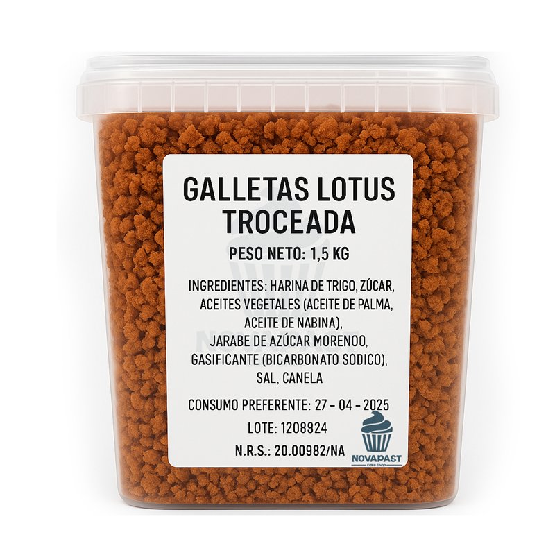 El CUBO 1,5 KG TROZOS GALLETA CUMB. LOTUS es más que un simple ingrediente; es una invitación a experimentar y deleitarse con sabores únicos. Ya sea que estés preparando un postre para una ocasión especial o simplemente quieras darte un capricho, este producto es la elección perfecta para elevar tus creaciones al siguiente nivel. No esperes más para descubrir cómo estos trozos de galleta pueden transformar tus recetas cotidianas en experiencias inolvidables.