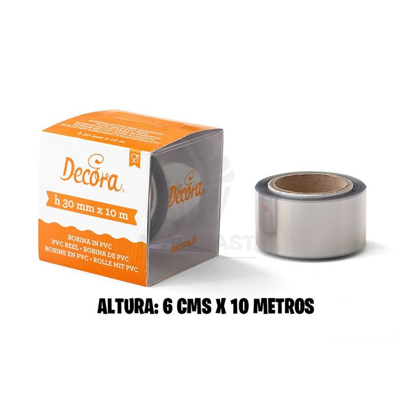 Rollo de 10 metros de acetato fabricado en PVC alimentario. Uso en tartas heladas, mousses, semifrios...