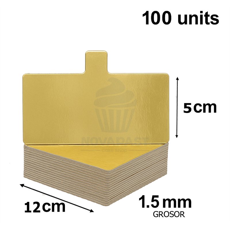 En resumen, el PAQ. 100 BASES CARTON ORO RECT. C/PESTAÑA 5X12 CM es una opción ideal para quienes buscan combinar elegancia, funcionalidad y economía en la presentación de sus postres. Con estas bases, cada creación será una obra de arte que deleitará tanto a la vista como al paladar.