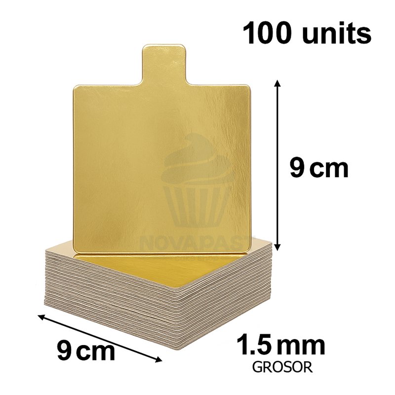 En resumen, el PAQ. 100 BASES CARTON ORO CUADRADA C/PESTAÑA 9X9CM es una inversión inteligente para cualquier negocio de pastelería o panadería que desee combinar calidad, elegancia y economía. Con estas bases, cada postre se convierte en una obra de arte digna de admiración.