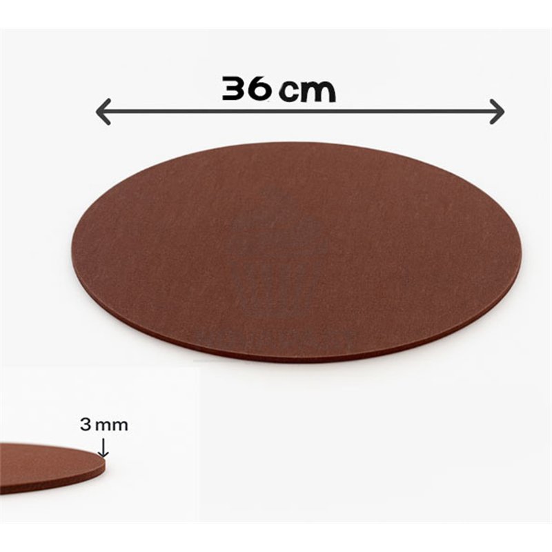 Con un diámetro de 36 centímetros y un grosor de 3 milímetros, esta base es ideal para soportar pasteles de varios niveles, asegurando que cada capa se mantenga en su lugar sin riesgo de deslizamiento. Su color marrón aporta un toque sofisticado y neutro que complementa cualquier decoración, desde las más simples hasta las más elaboradas.