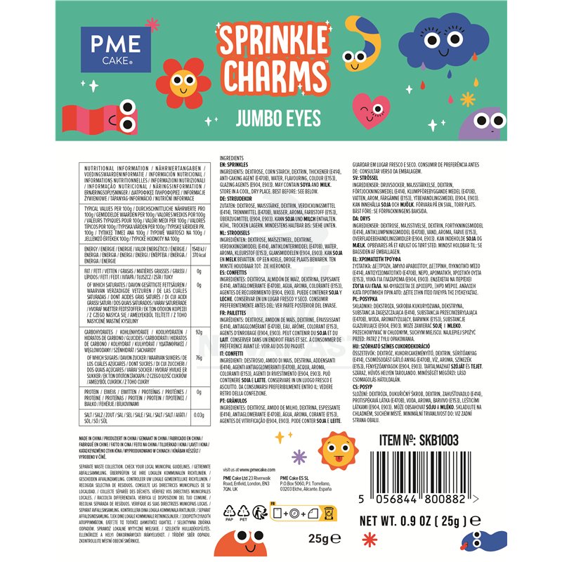 Los PME Blister Sprinkles Ojos Gigantes 25gr son el toque perfecto para llevar tus creaciones de repostería a un nivel superior. Estos divertidos y originales sprinkles en forma de ojos gigantes no solo añaden un elemento visual sorprendente a tus postres, sino que también son una manera sencilla y económica de transformar cualquier dulce en una obra de arte.