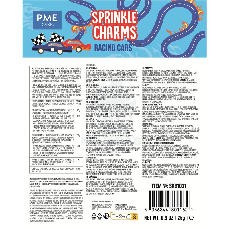 El PME Blister Sprinkles Coches de Carrera 25gr es el complemento perfecto para darle un toque especial a tus creaciones de repostería. Este producto no solo es visualmente atractivo, sino que también es una opción asequible para quienes buscan decorar sus postres con estilo y creatividad. Con un diseño inspirado en coches de carrera, estos sprinkles son ideales para fiestas temáticas, cumpleaños infantiles o cualquier ocasión que requiera un toque de diversión y color.