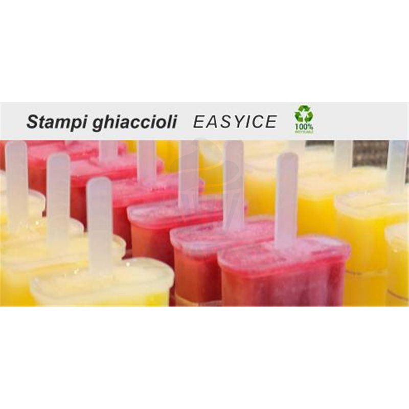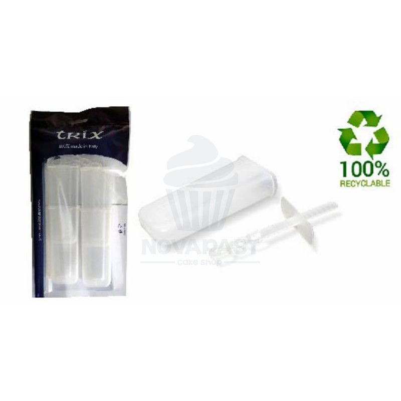 Set de 4 moldes de sorbetes fabricados en polipropileno reciclable alimentario transparente.