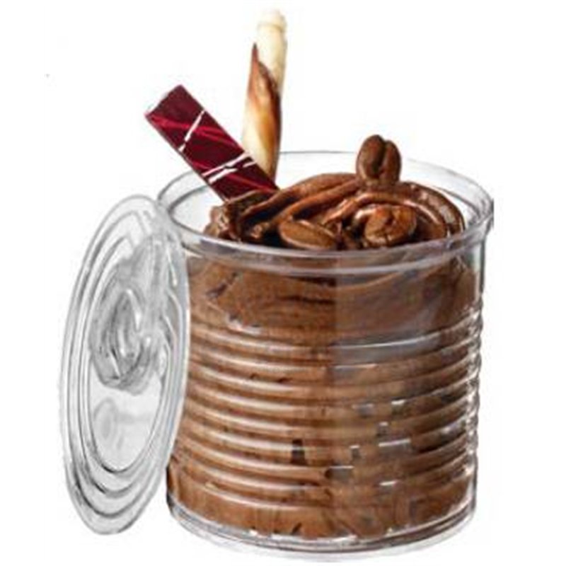 Presenta tus creaciones de una forma original con estas latas fabricadas en plástico Ps alimentario ideal para presentaciones de postres, mousses y cocina en general.