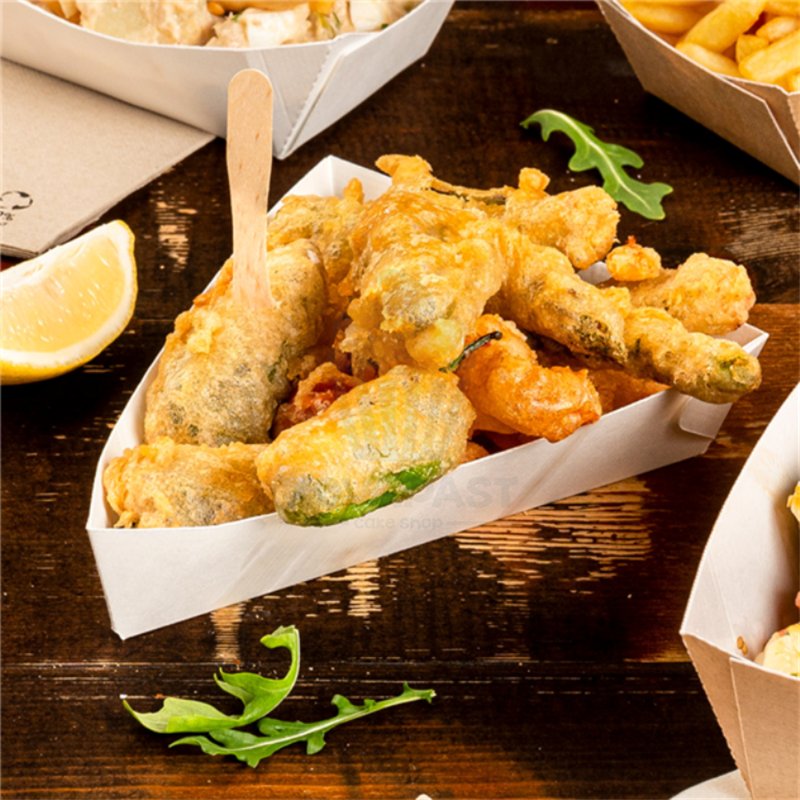Fabriquées en carton de haute qualité, ces barquillas sont non seulement robustes mais aussi respectueuses de l'environnement. Leur forme triangulaire unique permet de mettre en valeur vos pâtisseries de manière originale, tout en garantissant une stabilité optimale. Avec des dimensions de 14,5 x 19 x 3,5 cm, elles sont parfaites pour accueillir une variété de desserts, des parts de gâteaux aux tartes individuelles.