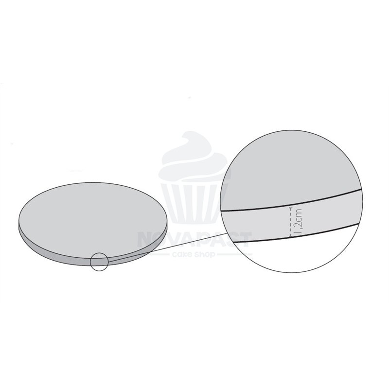 Base de 1,2 cm d'épaisseur pour gâteau décoré et métallisé, rigidité extrême. Idéale pour la présentation de gâteaux, possibilité de monter plusieurs étages avec la référence M30358 (Piliers en plastique).