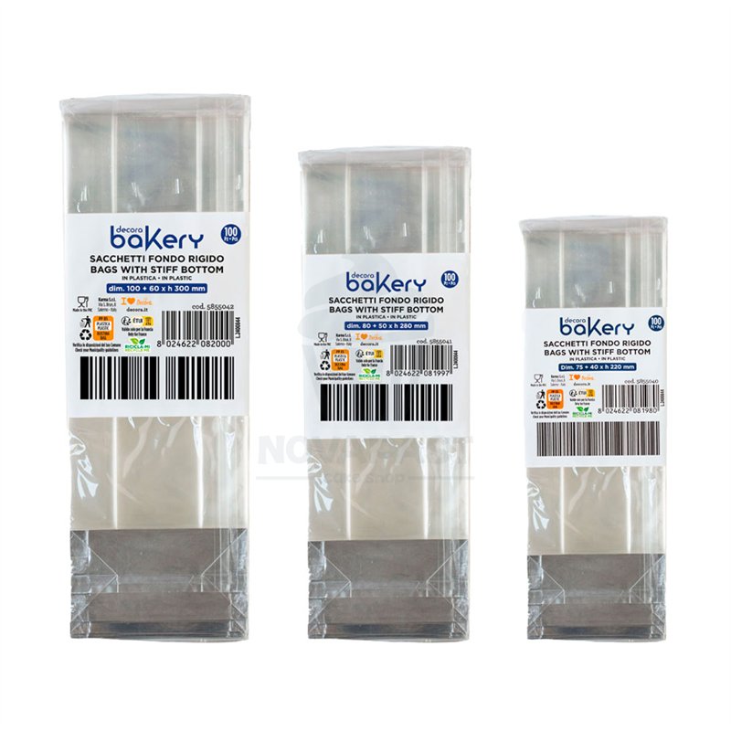 Les DECORA 100 BOLSAS CELOFAN FONDO RIGIDO sont l'accessoire idéal pour tous vos besoins en emballage, que ce soit pour des occasions spéciales ou pour un usage quotidien. Ces sacs en cellophane sont conçus pour offrir une présentation élégante et professionnelle à vos produits de pâtisserie et de boulangerie.