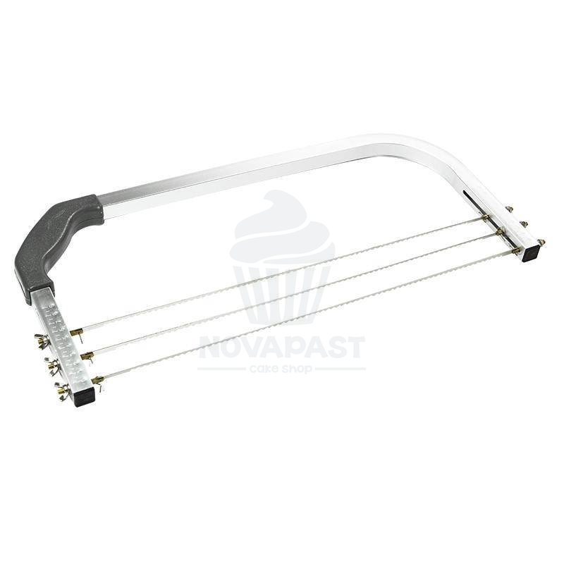 Lira profissional metálica com altura ajustável para bolo, permite fazer cortes horizontais perfeitos.